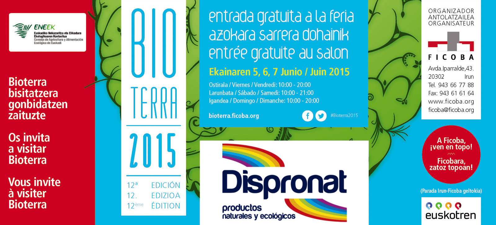 Anímate y pásate por Bioterra. Si te acercas a nuestro stand (stand 45 – Pabellón 3) podrás participar en un sorteo organizado por el periódico BIOECO ACTUAL y patrocinado por Dispronat.
