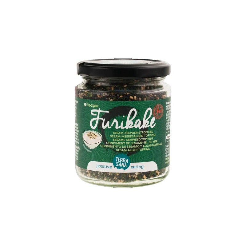El furikake es una mezcla crujiente de semillas de sésamo saladas y algas japonesas. Un condimento japonés, para darle un ligero toque salado a un plato de arroz, a una ensalada o a un plato de pescado.