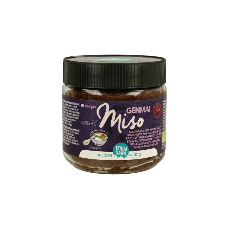 El genmai miso (sin pasteurizar) es un condimento japonés de un sabor medio-fuerte, el cual esta elaborado según técnicas tradicionales a partir de judías de soja y arroz integral sin refinar. Periodo de fermentación: mínimo de 18 meses.