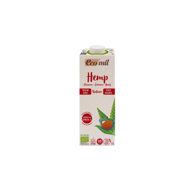 Agua, semillas de cáñamo* (3%), aceite de cáñamo* (1,3%), almidón de tapioca*, lecitina de girasol. *Ingredientes procedentes de la agricultura ecológica. SIN AZÚCAR (SÓLO LOS NATURALMENTE PRESENTES), SIN EDULCORANTES.