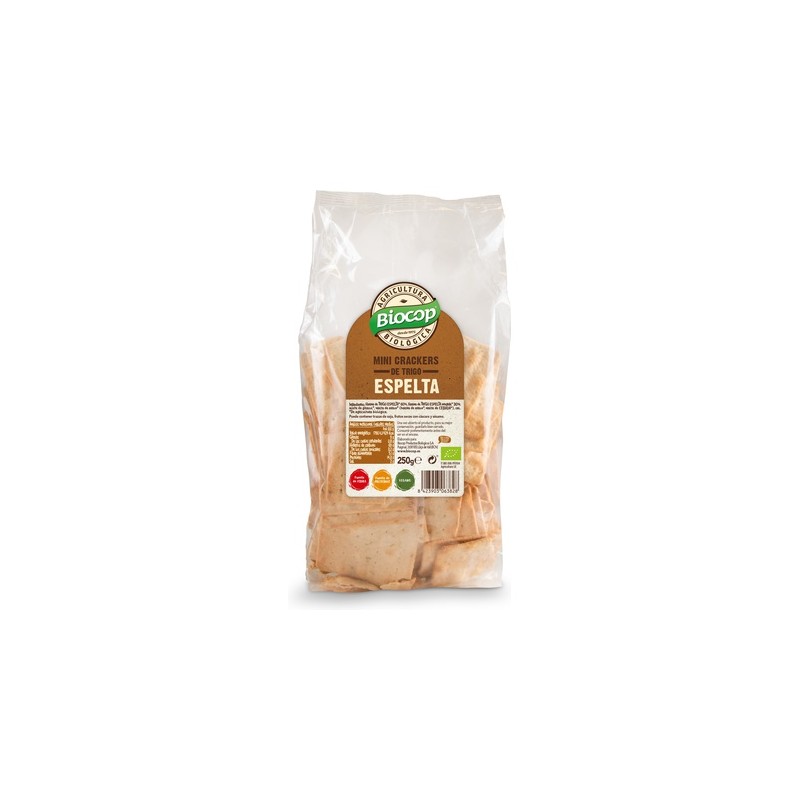 Los mini crackers de trigo y espelta de Biocop son una alternativa vegana creada para aportar ligereza y sabor a los aperitivos o snacks.