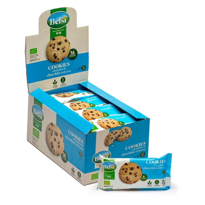 Harina de TRIGO*, sirope de TRIGO*, Aceites y grasas vegetales no hidrogenadas *(girasol*, cacao*), pepitas de chocolate* (azúcar de caña*, pasta de cacao*, emulgente (lecitina de SOJA*), extracto natural de vainilla*), Harina de SOJA*, HUEVOS*, aroma (Extracto natural de vainilla*) y Gasificante (bicarbonato amónico). *Procedente de la agricultura ecológica.