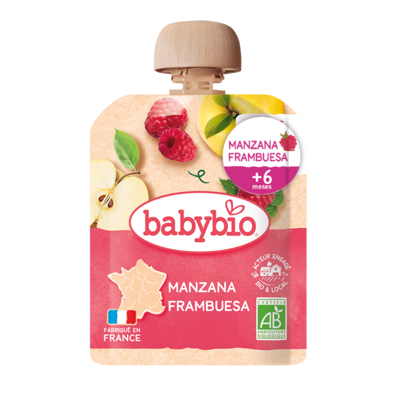 Manzanas de Provenza* 85%, frambuesas de España* 15%. De agricultura ecológica.