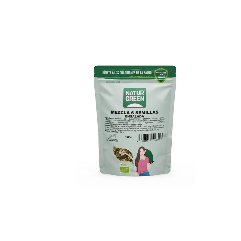Semillas de girasol* (35%), sésamo crudo* (15%), calabaza* (15%), lino marrón* (15%), lino dorado* (15%) y amapola azul* (5%)