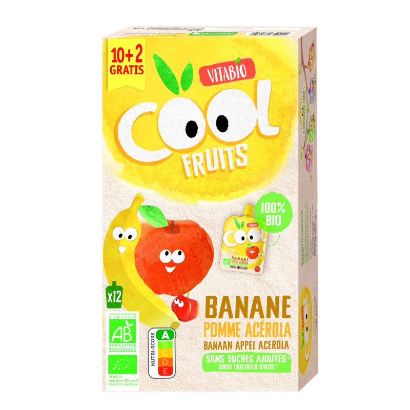Plátano * 50%, manzana * 49,5%, zumo de limón concentrado * 0,5%. *Ingredientes procedentes de la agricultura ecológica.
