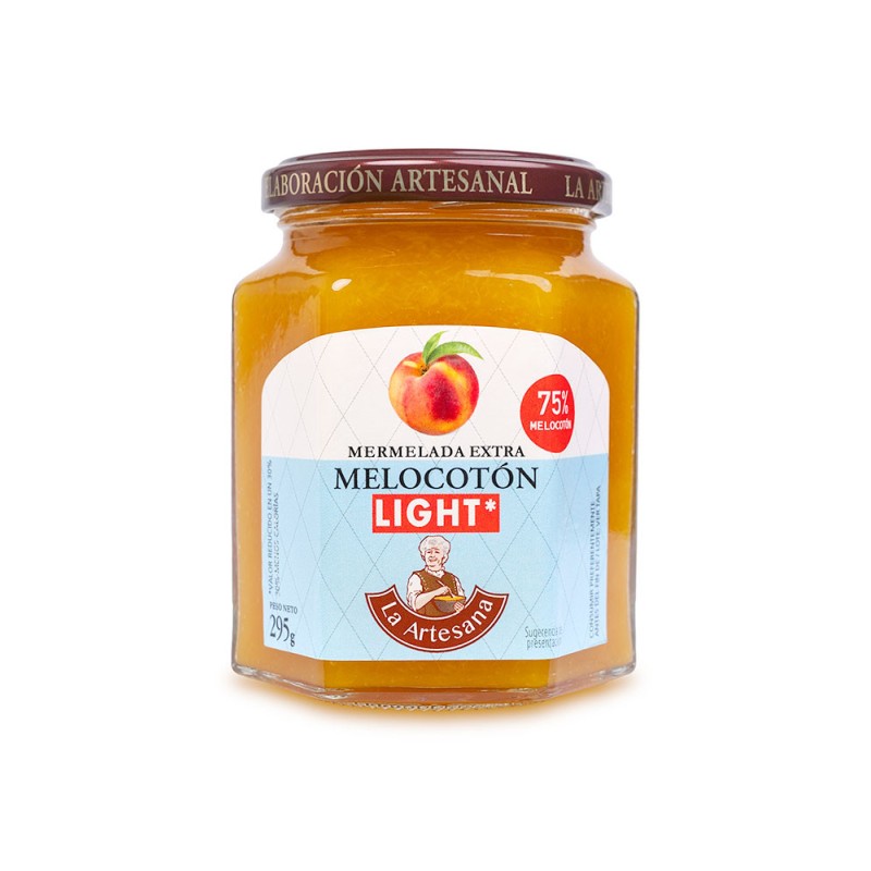 Melocotón (75%), fructosa, espesante: pectina, acidulante: ácido cítrico, antioxidante: E302.