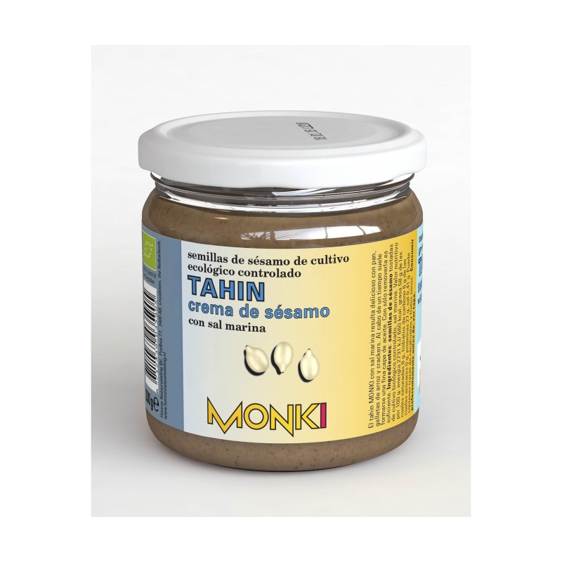 El tahin de Monki resulta delicioso con pan, galletas de arroz y crackers. Al cabo de un tiempo suele formarse una fina capa de aceite. Con sólo removerla es suficiente.