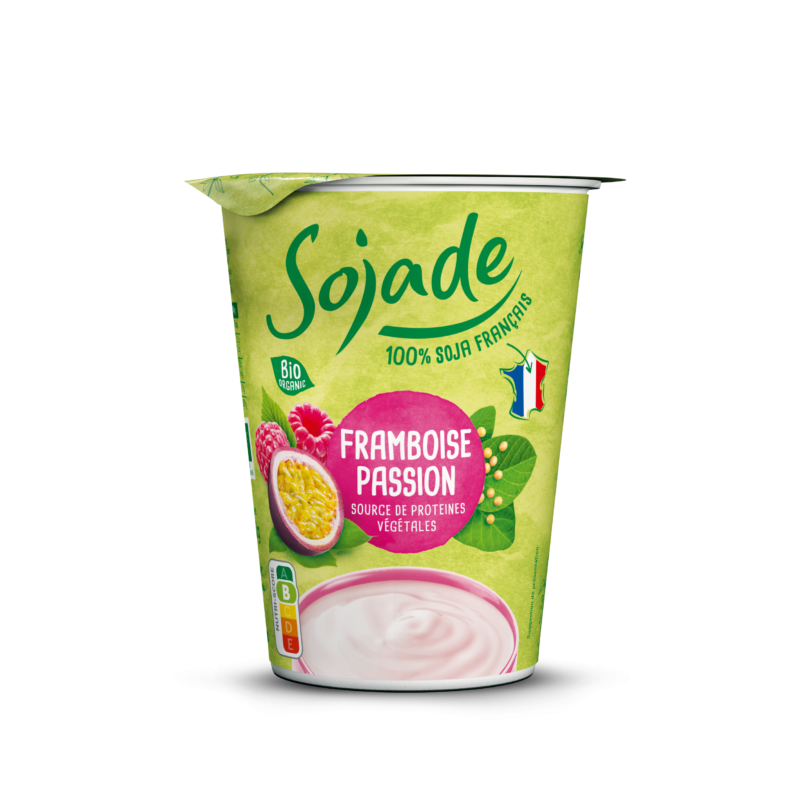 Bebida de soja* 78%, azúcar de caña sin refinar* 7%, frambuesa* 7%, zumo de fruta de la pasión* 2%, almidón de tapioca*, aroma natural de fruta de la pasión*, zumo concentrado de saúco*, aroma natural de frambuesa*, espesante: harina de algarroba*, fermentos seleccionados de los cuales Bifidus y Lactobacillus acidophilus. *Procedente de la agricultura ecológica.