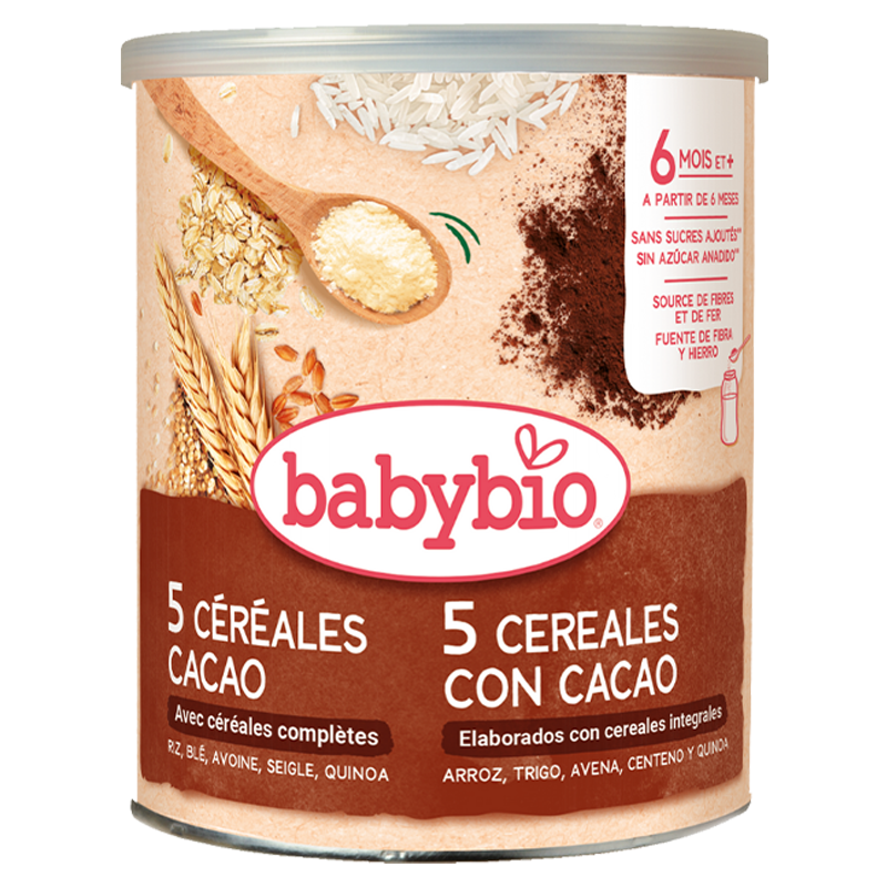 Harina de arroz* 44%, harina de trigo* 29,5%, harina de avena integral* 10%, harina de trigo integral* 5%, harina de centeno integral* 5%, harina de quinoa* 4,8%, cacao en polvo* 1,6%, hierro, vitamina B1.