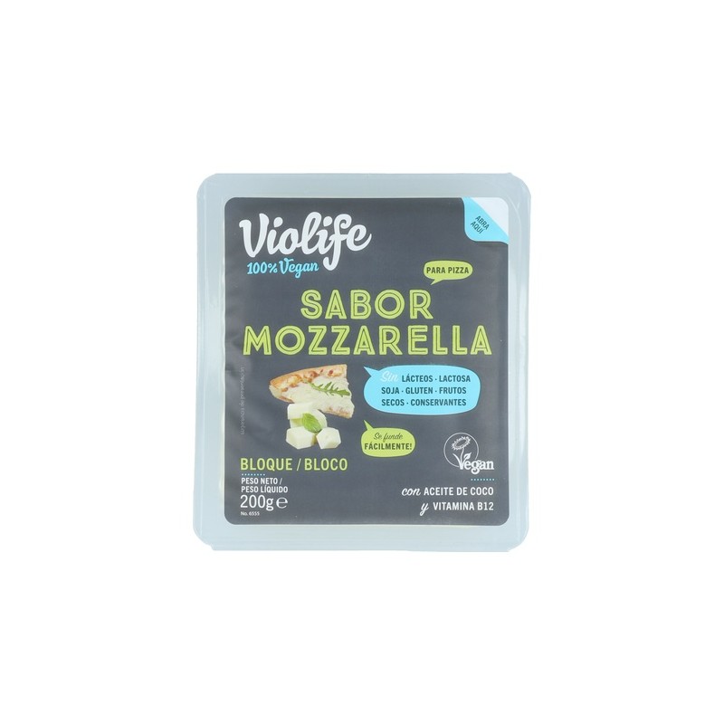 Agua, aceite de coco no hidrogenado 21%, almidón, almidón modificado, sal marina, aroma mozzarella, extracto de aceituna, colorante: b-caroteno y vitamina B12.