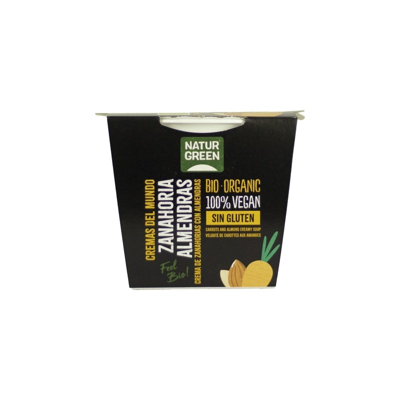 Verduras 48% (zanahoria, cebolla, patata), almendra 2,5%, almidón de tapioca, maltodextrina de maíz, aceite de oliva virgen extra 1,7%, sal marina, especias (nuez moscada, pimentón dulce, pimienta negra).