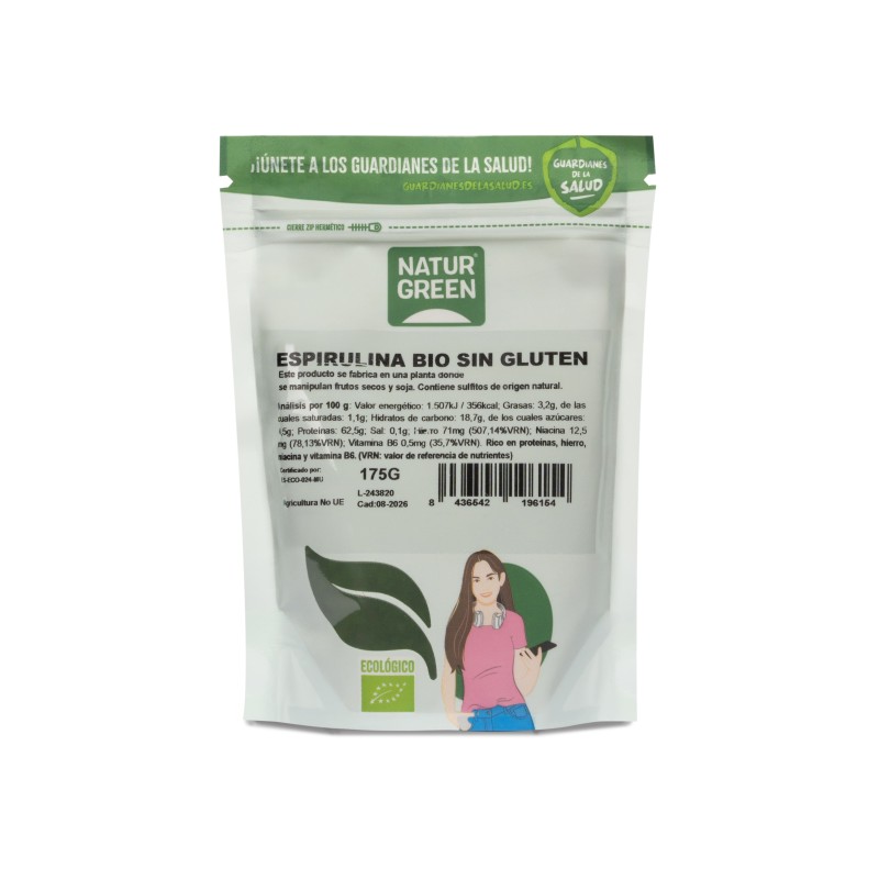 Espirulina en polvo* (100%) *Ingrediente procedente de la agricultura ecológica.